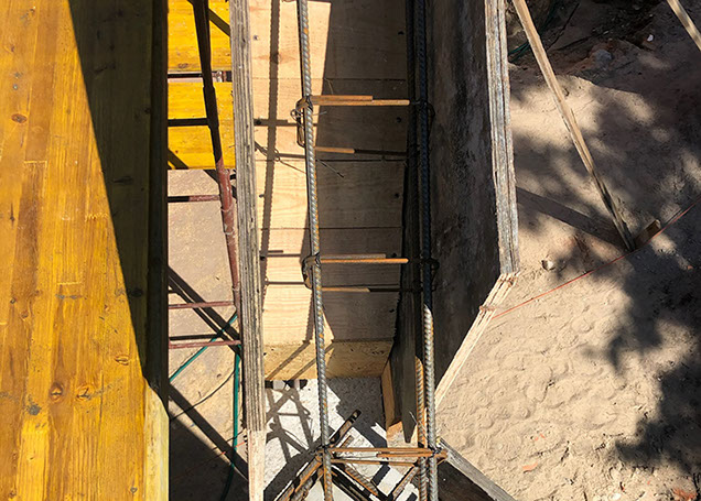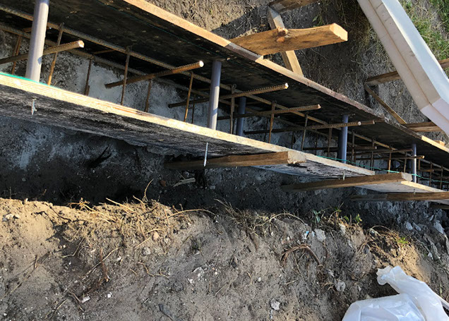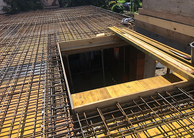 2. Projektowany budynek gospodarczy jest obiektem 1 kondygnacyjnym, niepodpiwniczonym. Budynek zaprojektowano w technologii tradycyjnej. Ściany murowane dwuwarstwowe, strop żelbetowy o gr. 16 cm, dach dwuspadowy o konstrukcji drewnianej, jętkowej. Kąt nachylenia połaci dachowych wynosi 40o.